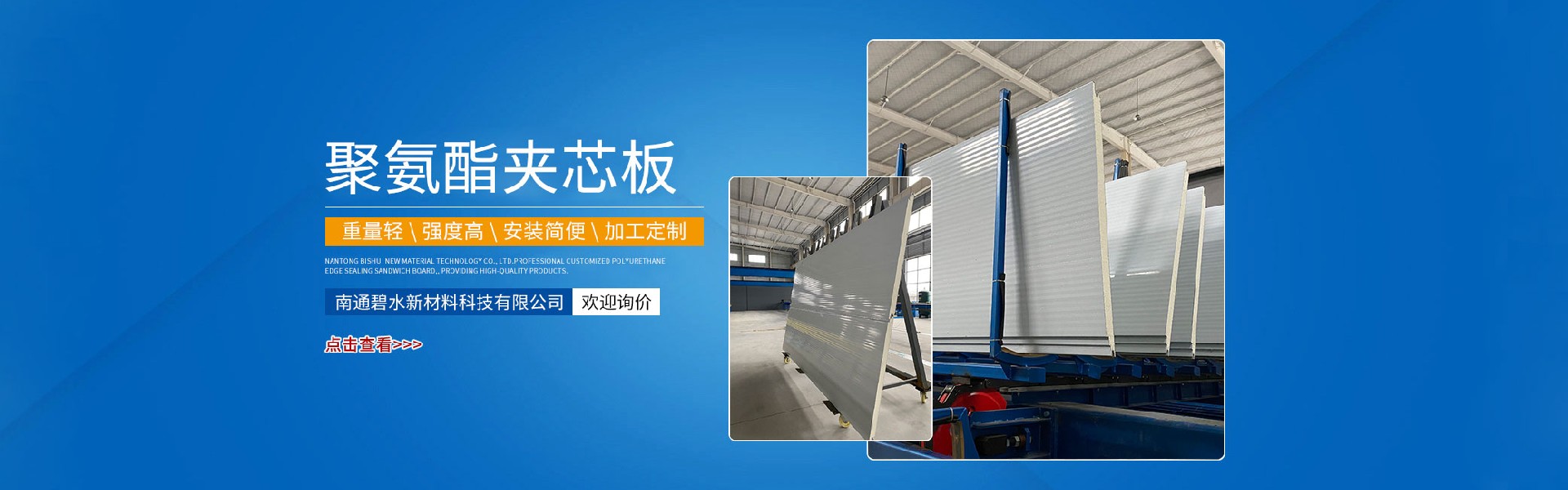 南通碧水新材料科技有限公司所生產的彩鋼瓦、樓承板、彩鋼落水管、不銹鋼瓦、鋁合金瓦、聚氨酯冷庫板、聚氨酯夾芯板、聚氨酯封邊巖棉夾芯板、四企口巖棉夾芯板、C/Z型鋼等均已行銷全國,廣泛應用于各大工業廠房,建筑場所?,F公司已成功打入國際市場,并得到同行業的高度認可。我們會始終以先進的技術,嚴格的管理,良好的信譽為各界朋友提供更優質的服務。致力于構建一個更高效,更安全,更科學的現代化生......
